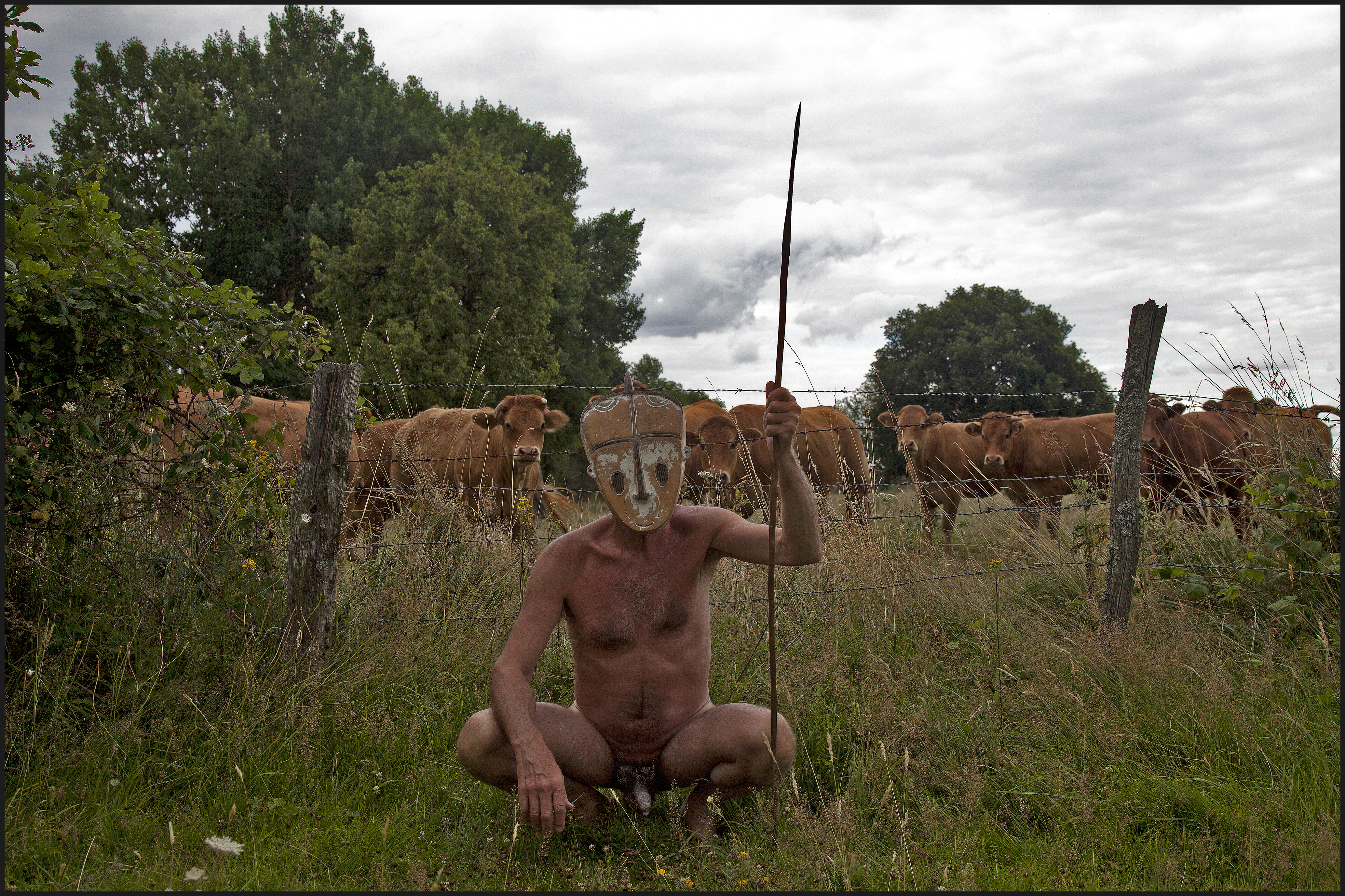 The white cloth backdrop in many of Martin Schreiber's self-portraits, staged in the luxurious fertile countryside of the Perche region of France, is of course reminiscent of Irving Penn's photographs from the 1970 expedition to Papua New Guinea - but more importantly to the very first photos of Papuans taken by German ethnologists and anthropologists at the beginning of the 20th century.