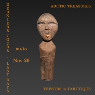 TRÉSORS de l’ARCTIQUE : L’art des anciennes cultures du Cercle Polaire est à l’honneur à la Galerie Meyer – Oceanic & Arctic Art, spécialisée depuis 45 ans dans les arts majeurs des cultures anciennes des îles du Pacifique et des peuplades du Grand Nord. Ces anciennes cultures du Grand Nord, issues à l’origine de l’Asie orientale, et leurs œuvres d’art sont aujourd’hui entièrement acceptés comme composant essential de l’histoire de l’art et de l’humanité. Les sculptures les plus anciennes sont celles découvertes sur les îles bordant le Détroit de Béring séparant la Russie de l’Alaska. Ces cultures archaïques dites d’Ekven, Okvik, pré-Koniag, OBS, Punuk, ou Aleut sont datables d’au moins 500 av. J.C. jusqu’au IXe-Xe siècles Ap. J.-C. Puis, au tournant du millénaire, arrive l’ultime vague migratoire dite de Thule qui va les supplanter et prospérer jusqu’à aujourd’hui. PROLONGATION JUSQU'AU 29 NOVEMBRE ! XXXXXXXX TREASURES OF THE ARCTIC : The art of the ancient cultures of the Arctic Circle are in the spotlight at Galerie Meyer – Oceanic & Arctic Art, which has specialized for 45 years in the major arts of the ancient cultures of the Pacific Islands and the peoples of the Far North. These ancient cultures of the Arctic Circle, originally originating in East Asia, and their works of art are today fully accepted as an essential component of the history of art and humanity. The oldest sculptures are those discovered on the islands bordering the Bering Strait separating Russia from Alaska. These archaic cultures known as Ekven, Okvik, pre-Koniag, OBS, Punuk, or Aleut can be dated to at least 500 BC. A.D. to the 9th-10th centuries A.D. Then, at the turn of the millennium, came the last migratory wave known as Thule, which would supplant them and prosper until today. EXTENDED UNTIL NOVEMBER 29th !! Download Download -