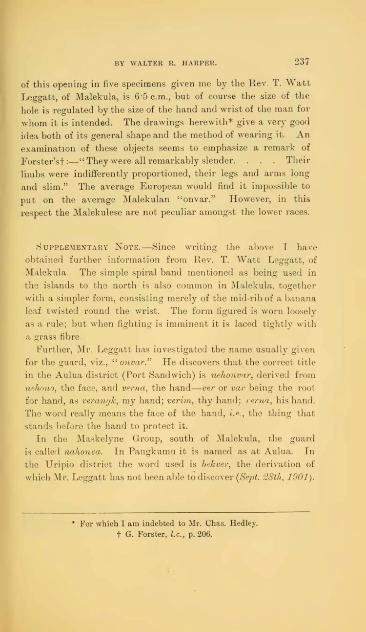 Harper R. Walter : ON THE ''ONVR" OF MALEKULA, NEW HEBRIDES. Published in Proceedings of the Linnean Society of New South Wales, 1901, volume 26, pages 233-237.