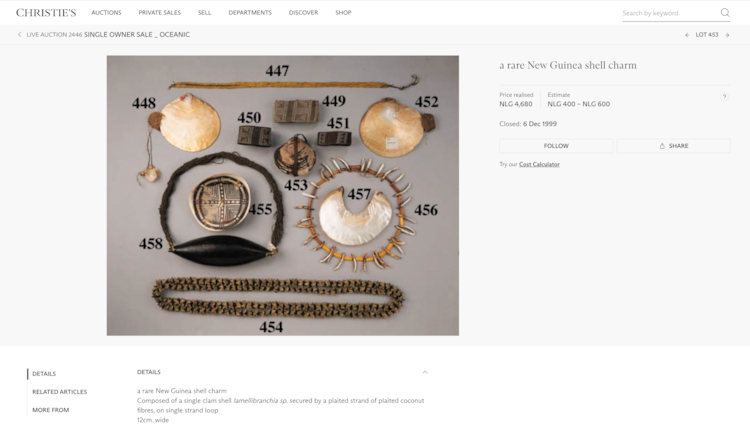 Christie’s, Amsterdam, 6/12/1999, No. 453, p. 17 (erroneously described as being from New Guinea).