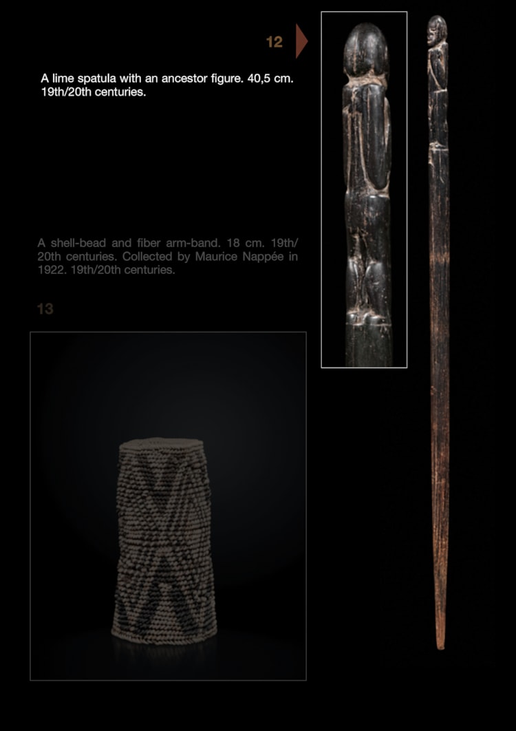 See similar examples in Phelps, Steven : ART AND ARTEFACTS OF THE PACIFIC, AFRICA, AND THE AMERICAS-THE JAMES HOOPER COLLECTION. Hutchinson & Co. LTD. and Christie’s, Manson & Woods, London. 1975, N° 1177, pl. 174, pp. 252/436 ; and another ex Gal. Meyer published : fig. 12 in ART of the SOLOMON ISLANDS and a selection of early Oceanic Master Works. Galerie Meyer - Oceanic Art catalogue for TEFAF, 2011. A similar example is in the British Museum donated by Rev. R. B. Comins 12 Jany. 1891. N° Oc1891C2.4898a.