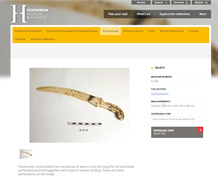See similar examples in the Horniman, British (from Winter Island : N° Am1987, Q.38) and Pitt Rivers Museums, UK.