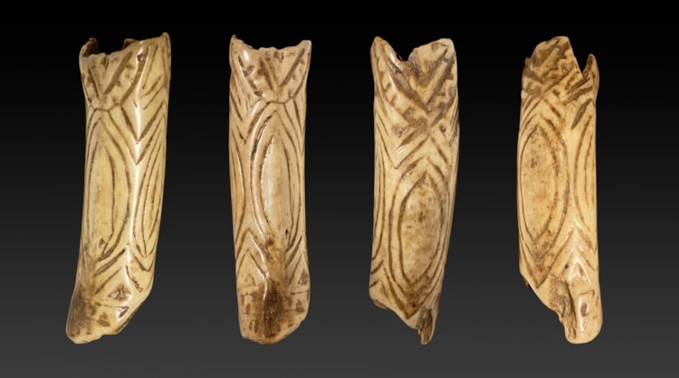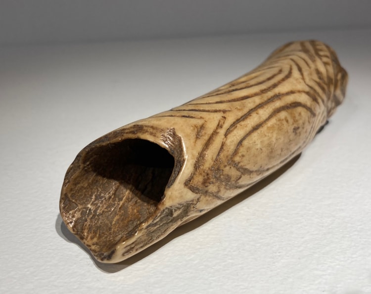 Human bone with a fine patina of long usage and great age.